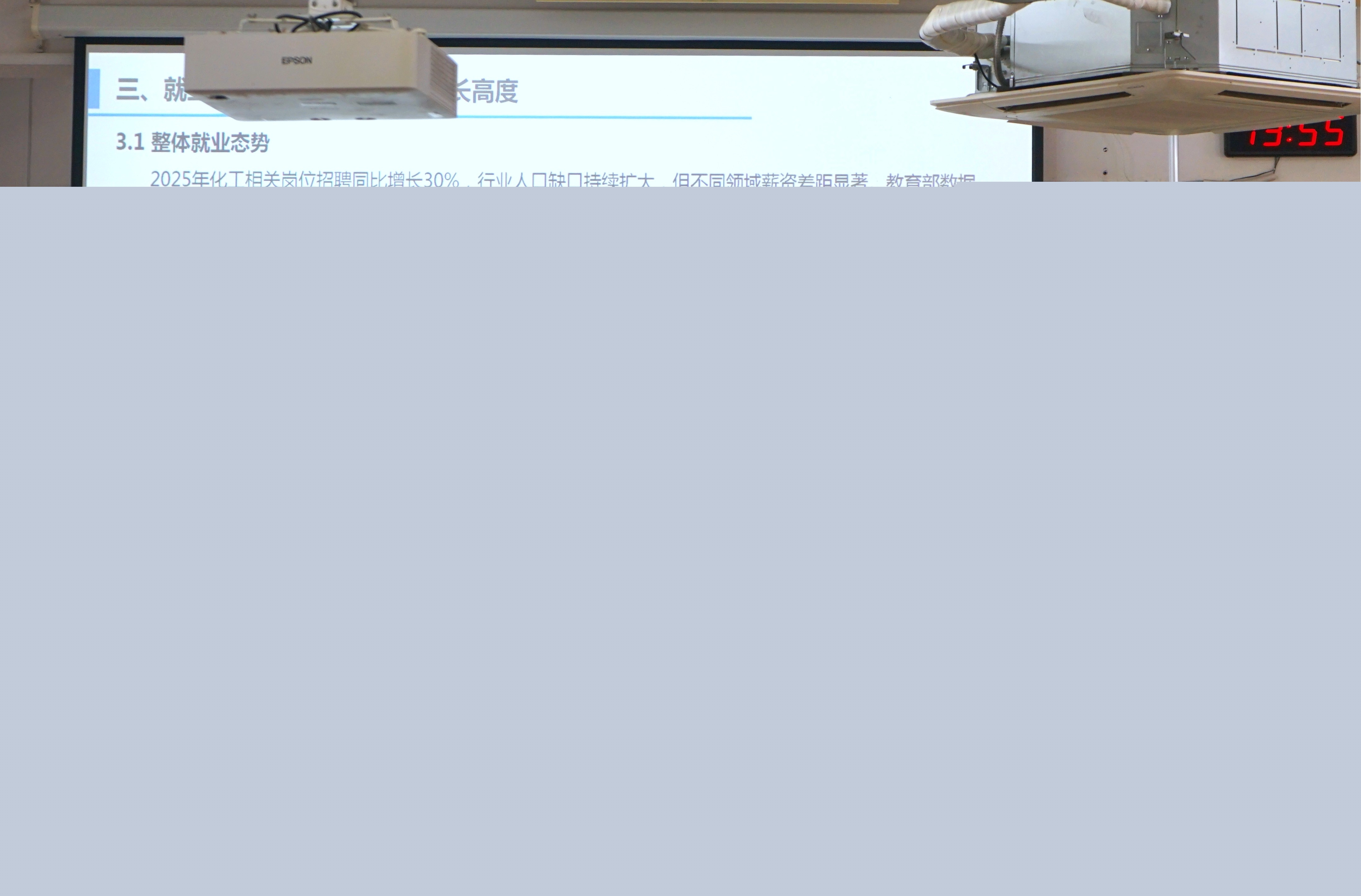 本次講座圍繞石化企業(yè)的招聘要求、行業(yè)發(fā)展現(xiàn)狀、職業(yè)發(fā)展建議等方面展開。三位校友首先為同學(xué)們解析了當(dāng)前石化行業(yè)的招聘趨勢、招聘流程和具體要求,并結(jié)合他們所在企業(yè)和相關(guān)領(lǐng)域的詳實產(chǎn)業(yè)數(shù)據(jù),深入剖析了化工相關(guān)產(chǎn)業(yè)的發(fā)展現(xiàn)狀。此外,校友們結(jié)合他們的求學(xué)和工作經(jīng)歷,給學(xué)弟學(xué)妹們分析了化工相關(guān)專業(yè)的就業(yè)現(xiàn)狀和職業(yè)發(fā)展前景,幫助同學(xué)們厘清發(fā)展路徑、做好職業(yè)規(guī)劃。最后,他們寄語學(xué)弟學(xué)妹們要筑牢專業(yè)知識基礎(chǔ),務(wù)必學(xué)好專業(yè)課程;要拓展視野,鼓勵大家積極參與科研項目、學(xué)科競賽和社會實踐,提升解決復(fù)雜問題的綜合能力;還要錘煉品格,培養(yǎng)吃苦耐勞、勇于擔(dān)當(dāng)?shù)穆殬I(yè)精神,并保持終身學(xué)習(xí)的習(xí)慣,以應(yīng)對行業(yè)的快速變革。他們的寄語情真意切,引發(fā)了在場同學(xué)的深深共鳴。