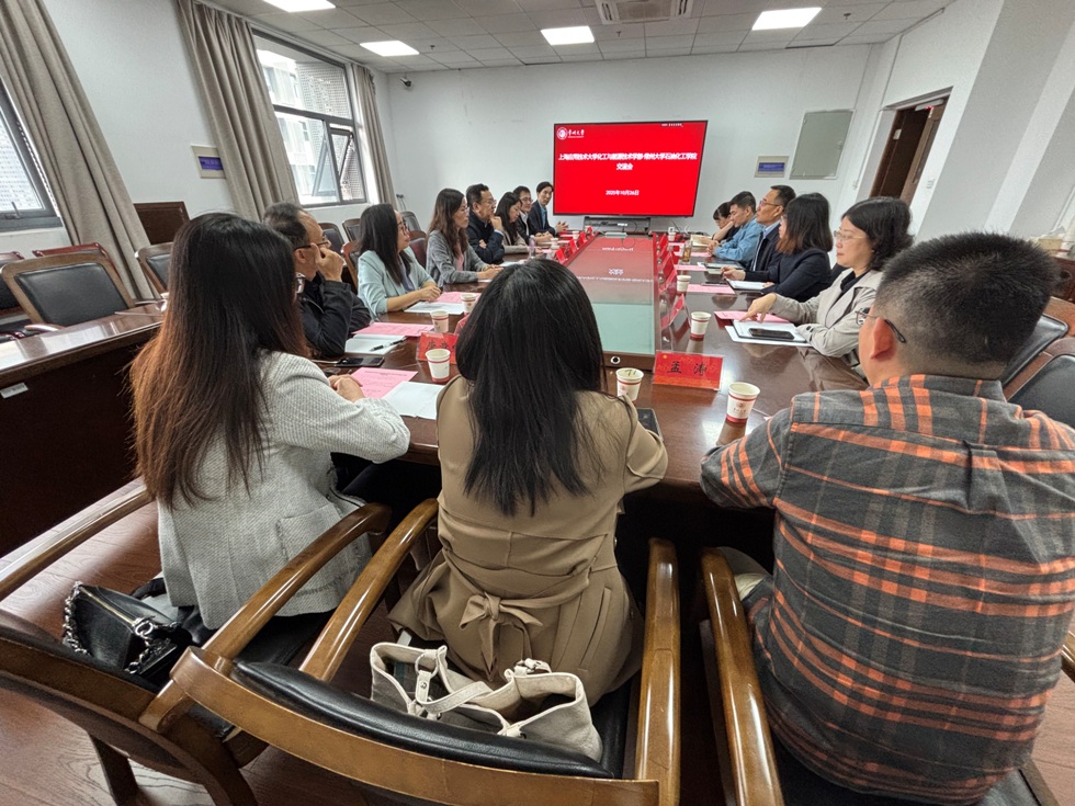 10月26日下午,上海應(yīng)用技術(shù)大學(xué)化工與能源技術(shù)學(xué)部主任韓生、黨委書記陳靜一行來我院交流,黨委書記業(yè)緒華、院長劉平、黨委副書記劉國仕、副院長黃薇等參加交流,會議由劉平主持。