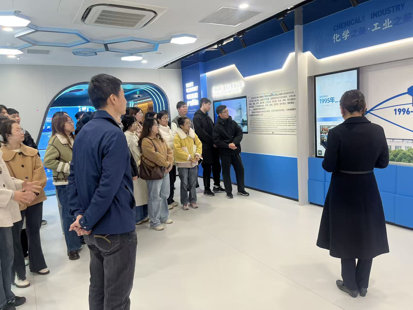 師生一行參觀了企業(yè)展廳,工作人員講解了新浦化學的發(fā)展歷史、智能控制系統(tǒng)、生產(chǎn)工藝流程,讓同學們直觀地了解化工生產(chǎn)運行模式和智能化轉(zhuǎn)型實踐。