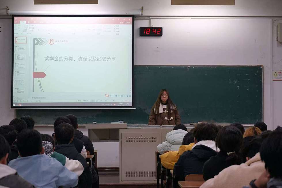 會(huì)上,兩位同學(xué)圍繞獎(jiǎng)學(xué)金類型、學(xué)習(xí)規(guī)劃與綜合素質(zhì)拓展等方面展開分享。她們系統(tǒng)介紹了學(xué)院設(shè)立的各類獎(jiǎng)學(xué)金,并基于自身經(jīng)驗(yàn),強(qiáng)調(diào)了“預(yù)習(xí)-聽課-復(fù)習(xí)”的高效學(xué)習(xí)閉環(huán),以及通過(guò)考證、競(jìng)賽、學(xué)生工作與志愿服務(wù)等途徑提升綜合能力的重要性。她們鼓勵(lì)大家勇于嘗試、主動(dòng)爭(zhēng)取。