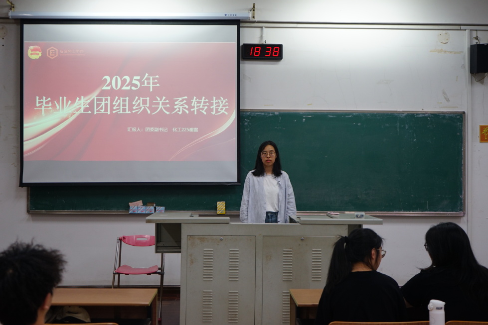 為推進(jìn)團(tuán)組織規(guī)范化建設(shè),確保畢業(yè)生團(tuán)組織關(guān)系轉(zhuǎn)接工作順利進(jìn)行,我院于5月22日在W1209教室開展了2025屆畢業(yè)生團(tuán)組織關(guān)系轉(zhuǎn)接工作會(huì)議,會(huì)議由我院團(tuán)委副書記化工225謝露主講,各畢業(yè)班團(tuán)支書參加。