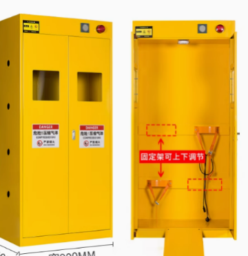 1、柜體材質(zhì):1.2mm厚冷軋鋼板,環(huán)氧樹(shù)脂粉末靜電噴涂,門(mén)板內(nèi)嵌3mm透明玻璃,一體鎖拉手,隱藏式不銹鋼承重合頁(yè), 配鋼瓶防倒鋼鏈,底部帶鋼搬運(yùn)斜坡。