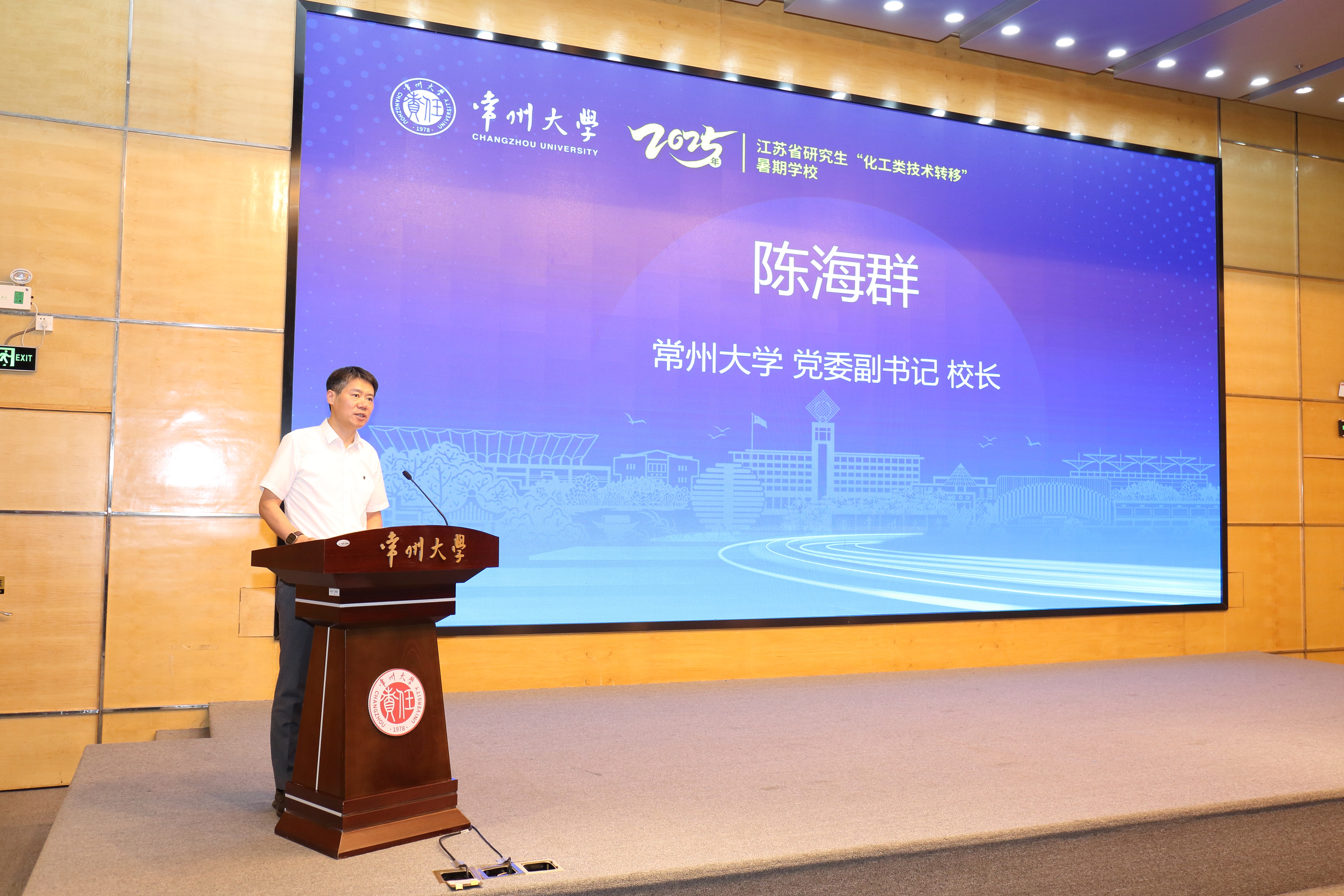 2025年8月25日上午,江蘇省研究生“化工類技術(shù)轉(zhuǎn)移”暑期學(xué)校開幕式在常州大學(xué)文彰樓報告廳隆重開幕。江蘇省教育廳研究生工作處處長金科,常州大學(xué)黨委副書記、校長陳海群,黨委常委、副校長李亞飛、校研究生院、石油化工學(xué)院、創(chuàng)新創(chuàng)業(yè)學(xué)院及技術(shù)轉(zhuǎn)移研究院等相關(guān)單位負(fù)責(zé)人,以及來自中國石油大學(xué)(北京)、寧波諾丁漢大學(xué)、寧波東方理工大學(xué)、中國礦業(yè)大學(xué)、南京工業(yè)大學(xué)、南京理工大學(xué)、江南大學(xué)、江蘇科技大學(xué)、淮陰工學(xué)院等十余所高校的百余名師生共同參加了開幕式,開幕式由李亞飛主持。