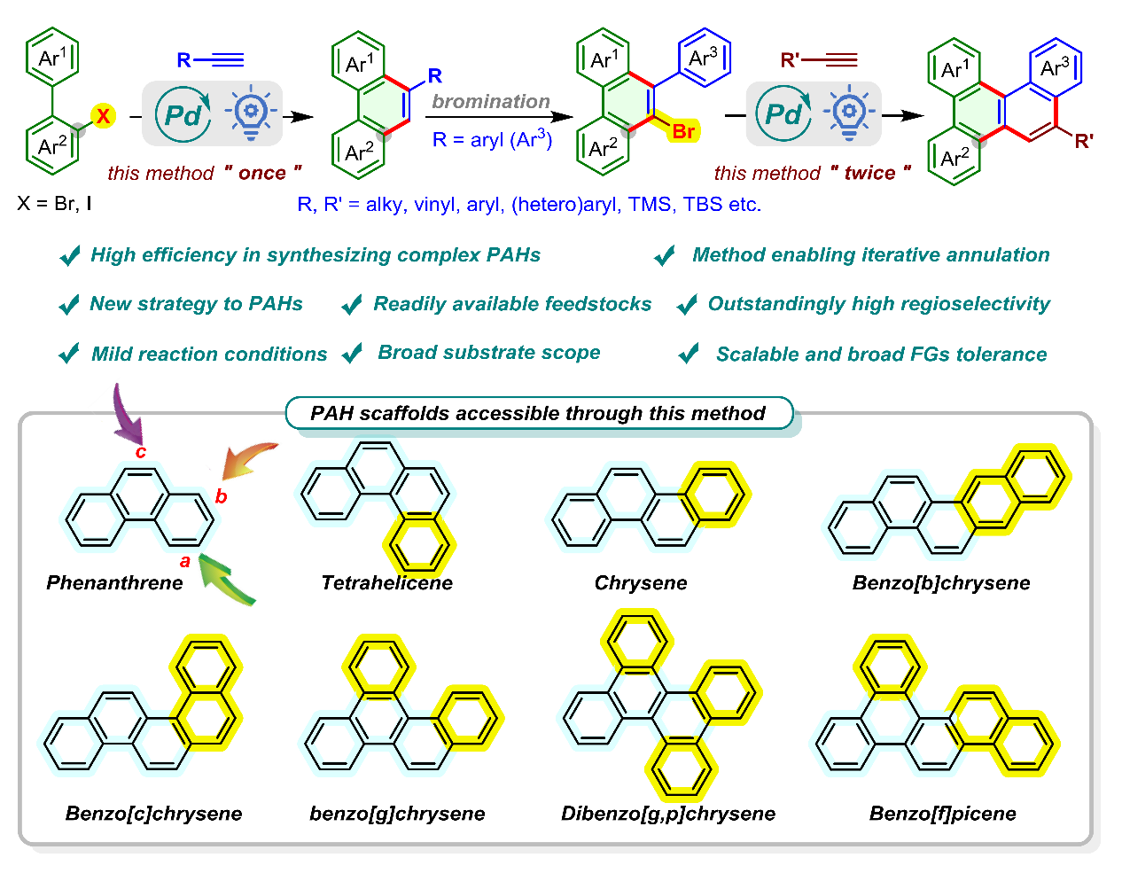 【亮點論文】陳銘課題組在光誘導鈀催化芳基鹵化物與末端炔烴模塊化合成多環(huán)芳烴研究領(lǐng)域取得重要進展
