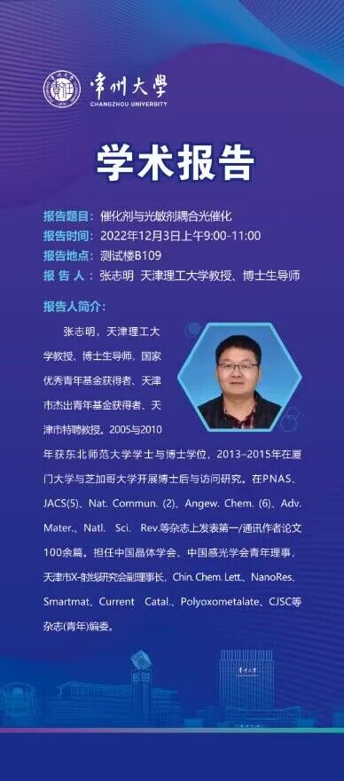 | 【學(xué)術(shù)報(bào)告】12月3日學(xué)術(shù)報(bào)告——張志明教授——天津理工大學(xué) |